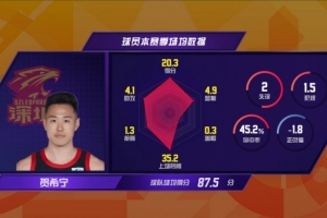 常規(guī)賽第二周周最佳球員賀希寧本場(chǎng)比賽發(fā)揮出色,他18次出手命中11球,得到賽季新高的29分。末節(jié)決勝時(shí)刻,賀希寧接管了比賽,他包辦了球隊(duì)最后12分中的10分。身體強(qiáng)壯的深圳后衛(wèi)先是突破造成付豪犯規(guī)打成2+1,隨后又在轉(zhuǎn)換進(jìn)攻中上籃得手。最后1分20秒,賀希寧再次突破打成2+1,當(dāng)他站上罰球線時(shí),主場(chǎng)球迷高喊起了“MVP”。