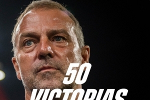 此役是弗里克執(zhí)教巴薩的第50場勝利,巴薩官方社媒曬出海報(bào),對他表示祝賀。