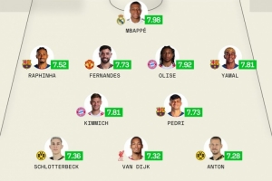 體育資訊1月1日訊 2025年已經(jīng)結(jié)束,sofascore也列出了五大聯(lián)賽年度評分最佳陣,姆巴佩領(lǐng)銜,巴薩4將在列。凱恩和哈蘭德落選。