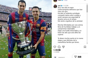 體育資訊9月27日訊 37歲的西班牙傳奇中場(chǎng)布斯克茨宣布將在本賽季結(jié)束后退役,他和哈維、伊涅斯塔曾在巴薩組成了堅(jiān)不可摧的中場(chǎng)三角。在社交媒體上,哈維為老友送上了祝福。