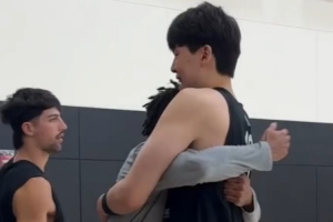 塞布爾一進(jìn)門就熊抱楊瀚森打招呼,眾將面對(duì)鏡頭笑呵呵,而夏普則一臉嚴(yán)肅。