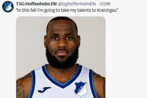 而德甲霍芬海姆也借機(jī)在社媒玩了一把梗。他們的英文社媒賬號曬出詹姆斯身穿霍芬海姆球衣的P圖照片,并配文道:“這個(gè)秋天,我將把天賦帶到克萊希高(霍芬海姆所在地)?!?/p>