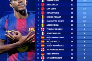 體育資訊10月10日訊 德國轉(zhuǎn)會市場盤點(diǎn)了2025年俱樂部層面各項(xiàng)賽事參與進(jìn)球最多U21球員,亞馬爾39場32球居首,杜埃39場26球位居次席。