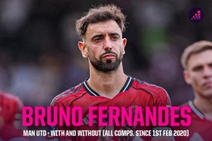 體育資訊10月14日訊 Opta統(tǒng)計了B費加盟曼聯(lián)以來出場、缺席情況下球隊的戰(zhàn)績,并做出對比。