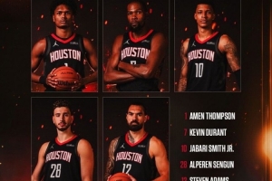 控衛(wèi)湯普森,鋒線杜蘭特、史密斯,前場申京、亞當斯!