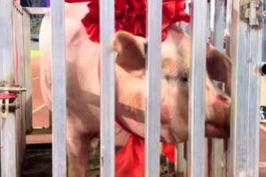 10月12日晚,被稱為“縣超”的五華縣“球王杯”足球超級聯(lián)賽落幕,橫陂隊奪得冠軍,獎品是一頭重達400斤的大肥豬。10月13日,相關(guān)視頻在社交平臺傳播后引發(fā)網(wǎng)友熱議。有網(wǎng)友調(diào)侃,“真是名副其實的‘豬’事順利”、“別人奪冠拿獎杯,他們是‘舉豬’慶功”“冠軍豬不僅重,還‘上鏡’。第一次見到這么有儀式感的獎品”。