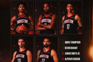 體育資訊10月21日訊 火箭主教練烏度卡透露球隊新賽季揭幕戰(zhàn)對陣雷霆的首發(fā),分別為阿門-湯普森、杜蘭特、小賈巴里-史密斯、申京和史蒂文-亞當斯。