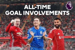 英超參與進球數(shù)第二多的是魯尼,共計208球103助攻,參與311球,目前第三與第二之間相差32球。