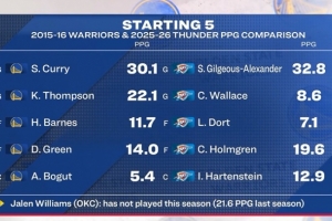 注:雷霆的杰倫·威廉姆斯賽季至今未出戰(zhàn),上賽季他場均21.6分。