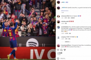 他也在賽后通過(guò)社媒曬出自己的慶祝照,并配文:“你好,諾坎普!回家的感覺(jué)真棒!”