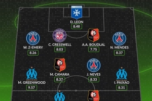 中場:梅森·格林伍德(馬賽,9.57分)、梅赫迪·卡馬拉(雷恩,8.37分)、若昂·內(nèi)維斯(巴黎,8.33分)、伊戈爾·派尚(馬賽,8.31分)
