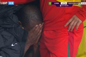 情緒崩潰!阿奇姆彭被換下后坐在替補(bǔ)席捂臉痛哭,隊(duì)友不停安慰。