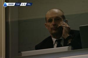 體育資訊12月09日訊 意甲第14輪米蘭客戰(zhàn)都靈,米蘭在第17分鐘0-2落后。隨后導(dǎo)播鏡頭捕捉到,因紅牌停賽的阿萊格里在看臺(tái)打了一通電話,隨后米蘭成功連扳3球!