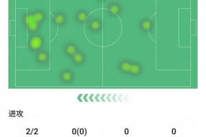 射門2次射正2次,丟失球權(quán)4次,預(yù)期進(jìn)球0.38球