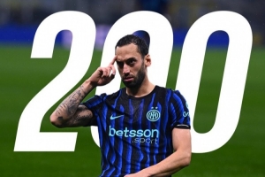 體育資訊12月10日訊 北京時間今天凌晨國米對陣?yán)锲值臍W冠,恰爾汗奧盧達(dá)成國米生涯200場里程碑。