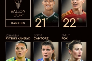體育資訊9月22日訊 2025女足金球獎(jiǎng)第21-25名公布: