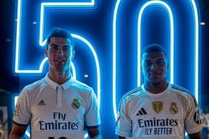 在西甲前50場比賽中,姆巴佩已打進(jìn)47球,在聯(lián)賽歷史上僅次于打進(jìn)48球的C羅。
