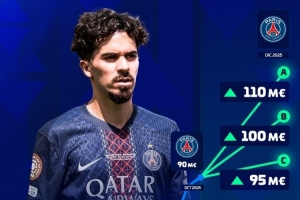 體育資訊12月12日訊 德國轉(zhuǎn)會市場預(yù)熱巴黎中場維蒂尼亞的身價變化,他的最新身價最高可能達(dá)到1.1億歐元。