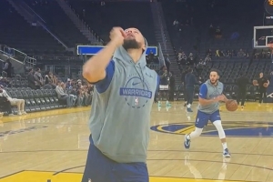 本場(chǎng)復(fù)出的庫(kù)里進(jìn)行了賽前熱身,熱身時(shí),他上腳了阿迪達(dá)斯球鞋,愛(ài)德華茲一代。