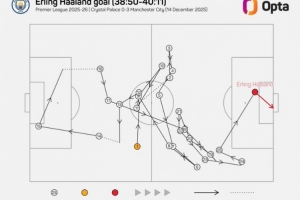 體育資訊12月15日訊 在本輪英超曼城3-0擊敗水晶宮的比賽中,哈蘭德梅開(kāi)二度。