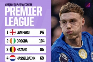 體育資訊12月15日訊 英超第16輪比賽,帕爾默復(fù)出破門,幫助切爾西主場2-0擊敗埃弗頓。帕爾默為切爾西攻入39粒英超進(jìn)球,排名切爾西隊史英超射手榜第9位。