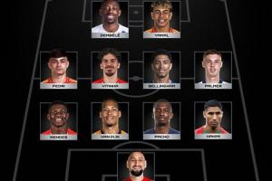 前9名將按照1名守門員、3名后衛(wèi)、3位中場、2名前鋒進(jìn)行選擇,選取得分最多的球員。在上述事項(xiàng)完成后,得分最高的2名未入選的外場球員將入選,但每個位置有人數(shù)上限:最多4名后衛(wèi)、4名中場、3名前鋒。