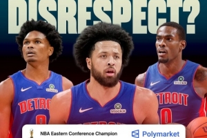 活塞隊以21勝5負(fù)的戰(zhàn)績領(lǐng)跑東部,但據(jù)預(yù)測機構(gòu)Polymarket預(yù)測,他們進入總決賽的概率僅為13% ??