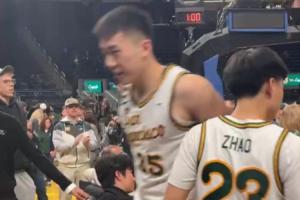 中國球員、舊金山大學后衛(wèi)趙維倫最后時刻獲得出場機會,上場1分鐘沒有運動戰(zhàn)出手,罰球2中1,得到1分。