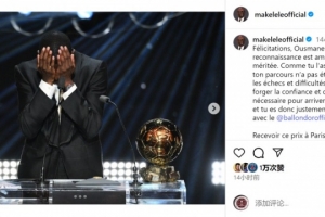 體育資訊9月24日訊 法國足壇名宿馬克萊萊更新社媒動(dòng)態(tài),祝賀登貝萊獲得金球獎(jiǎng)。