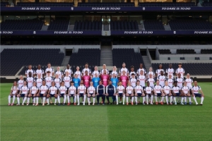 熱刺官方在今日通過(guò)社媒曬出男足和女足一線隊(duì)成員的合照全家福,兩位主帥位列C位,男足和女足球員隨機(jī)排列座次。