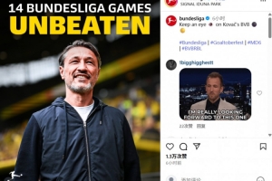 賽后,德甲官方也曬出海報(bào)報(bào)道這一數(shù)據(jù)。