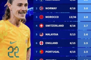 體育資訊10月9日訊 德轉(zhuǎn)統(tǒng)計(jì)2025年至今參加5場(chǎng)以上比賽的各國(guó)國(guó)家隊(duì)?wèi)?zhàn)績(jī),澳大利亞、挪威六戰(zhàn)全勝高居第一。