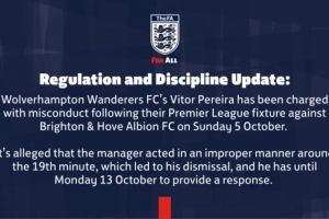日前,英足總官方發(fā)布公告:“狼隊(duì)主帥佩雷拉在10月5日周日對(duì)陣布萊頓的英超聯(lián)賽后被指控行為不當(dāng)。據(jù)稱,佩雷拉在第19分鐘左右行為不當(dāng),這導(dǎo)致他被罰下場(chǎng),他需在10月13日周一前對(duì)此作出回應(yīng)?!?/p>
