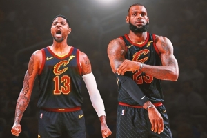 2017年總決賽剛落幕,勒布朗便與數(shù)名騎士隊員在酒店召開球員會議。他們深知需要引進巨星才能抗衡擁有庫里與杜蘭特的勇士,而他們鎖定的目標(biāo)正是:步行者當(dāng)家球星保羅-喬治。