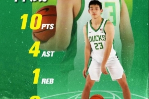 北京時(shí)間今天上午,林葳在俄勒岡大學(xué)vs猶他大學(xué)的季前熱身賽中迎來(lái)NCAA首秀。