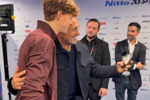 體育資訊11月17日訊 近日,尤文圖斯主帥斯帕萊蒂觀看了在都靈舉行的ATP總決賽,他在賽后與贏得冠軍的意大利選手辛納合影留念。