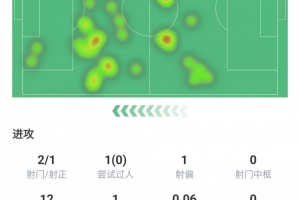 射門2次射正1次,嘗試過人1次,丟失球權(quán)12次,約為1次,預期進球0.06球