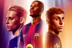 巴薩官方社媒發(fā)布了為此役制作的海報(bào),拉什福德C位,德容、費(fèi)爾明出鏡。