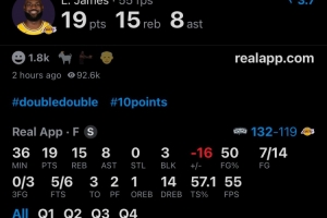 據(jù)統(tǒng)計(jì),詹姆斯本場(chǎng)比賽籃板、助攻(與東契奇并列)和蓋帽均為全隊(duì)最高。
