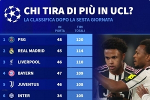 體育資訊12月11日訊 德國轉(zhuǎn)會(huì)市場(chǎng)統(tǒng)計(jì)了本賽季歐冠各隊(duì)的射門次數(shù),并列出榜單,巴黎120次射門居首,皇馬、利物浦二三位。