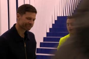 下半場(chǎng)比賽開始前,阿隆索在球員找到蒂爾潘,詢問上半場(chǎng)比賽的判罰,蒂爾潘給出了解釋,但從阿隆索回到替補(bǔ)席與教練組交談時(shí)的神情來看,顯然對(duì)于裁判的解釋并不滿意。