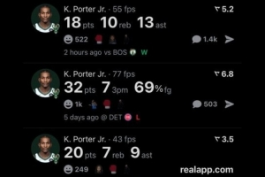 過去五場比賽,小波特連續(xù)四場得分20+,其中兩場30+,第五場則砍下18+10+13的三雙。