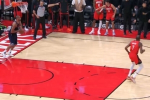 ??關(guān)鍵失誤:哈登沒有回頭 巴圖姆踩線后神情低落 盧直接掛機(jī)