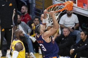 目前湖人17勝7負(fù)排名西部第五,太陽14勝11負(fù)排名西部第七。