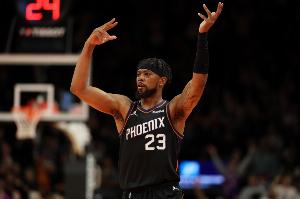 在上半場的比賽中,太陽球員古德溫有著不錯的發(fā)揮,他替補(bǔ)出戰(zhàn)了12分51秒,5投2中,三分2中1,得到5分3籃板2助攻2搶斷,正負(fù)值+14全場最高。