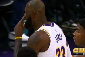 GIF-詹姆斯三分出手!裁判吹了太陽(yáng)犯規(guī)!太陽(yáng)挑戰(zhàn)!