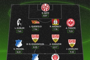 后衛(wèi):盧卡斯·庫(kù)布勒(弗賴堡,7.61分)、利奧波德·奎菲爾德(柏林聯(lián)合,7.96分)、安德里希(勒沃庫(kù)森,7.78分)、亞瑟·泰特(法蘭克福,7.23分)
