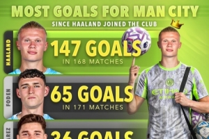 體育資訊12月15日訊 自從哈蘭德加盟曼城以來,他的恐怖進(jìn)球效率已經(jīng)不斷刷新多項(xiàng)紀(jì)錄。據(jù)score90數(shù)據(jù)統(tǒng)計(jì),2022年夏天,自哈蘭德加盟曼城以來,球隊(duì)的射手榜單中,哈蘭德本人以168場打進(jìn)147球斷層領(lǐng)跑,福登以171場打進(jìn)65球排名第二。