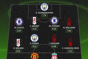 中場(chǎng):哈里·威爾遜(富勒姆)、福登(曼城)、桑加雷(諾丁漢森林)、奧多伊(諾丁漢森林)