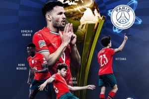 葡萄牙國家隊官方發(fā)布海報,祝賀效力巴黎的葡萄牙籍球員若奧·內(nèi)維斯、維蒂尼亞、努諾·門德斯和貢薩洛·拉莫斯隨隊奪冠,這也是他們隨巴黎和葡萄牙國家隊今年奪得的第7個冠軍,包括:法甲冠軍、法國杯冠軍、法國超級杯冠軍、歐冠冠軍、歐超杯冠軍、洲際杯冠軍以及歐國聯(lián)冠軍。